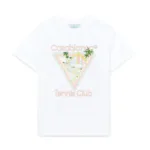 The Maison De Reve t-shirt is a short-sleeve printed design featuring seasonal artwork with references from a mid-century Palm Springs home and signature design elements – palm trees and a tennis court with Memphis wave-inspired details which serves as a foundational design element – in this season’s pastel colours. Crafted from organic cotton, complete with a classic crew neck.