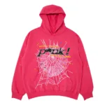 This pink hoodie features a spider-web logo on its chest with a p*nk graphic on it. The brand, Sp5der, was founded by Young Thug.